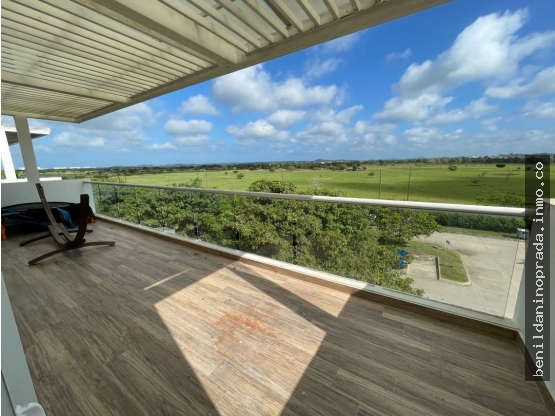 El apartamento ofrece un área construida de 111.0 m2, distribuidos estratégicamente en 2 cómodas alcobas, cada una con su baño privado y amplios armarios empotrados. Además, cuenta con un baño auxiliar, ideal para las visitas. La cocina tipo americano, con acabados modernos y funcionales, está equipada con electrodomésticos como horno, extractor y lavaplatos, y cuenta con una zona de lavandería para mayor comodidad.
